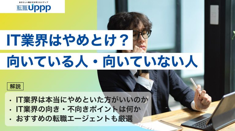 IT業界はAIやDXの進展によって注目を集める一方で「長時間労働が多い」「仕事量に見合った給与が得にくい」といった理由から「やめとけ」と言われることも少なくありません。 これからIT業界への転職を考えている方にとっては、本当に避けるべき業界なのか、不 […]