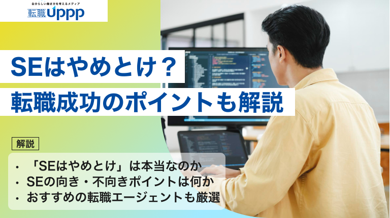 システムエンジニア(SE)は、専門性が高く将来性のある職業ですが、働く環境や職場の構造によっては激務になりやすく「やめとけ」と言われることも少なくありません。 これからシステムエンジニアへの転職を考えている人は、入社後に長く働き続けるか不安に感じてい […]